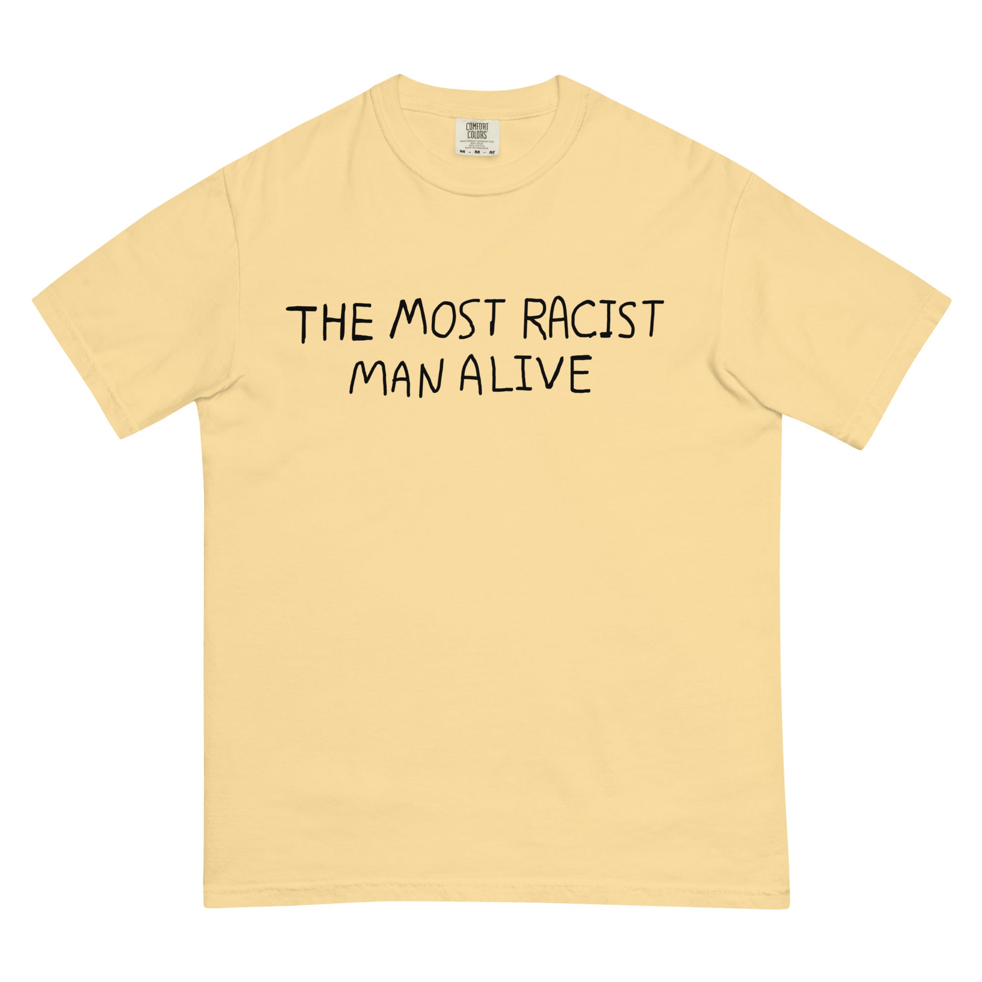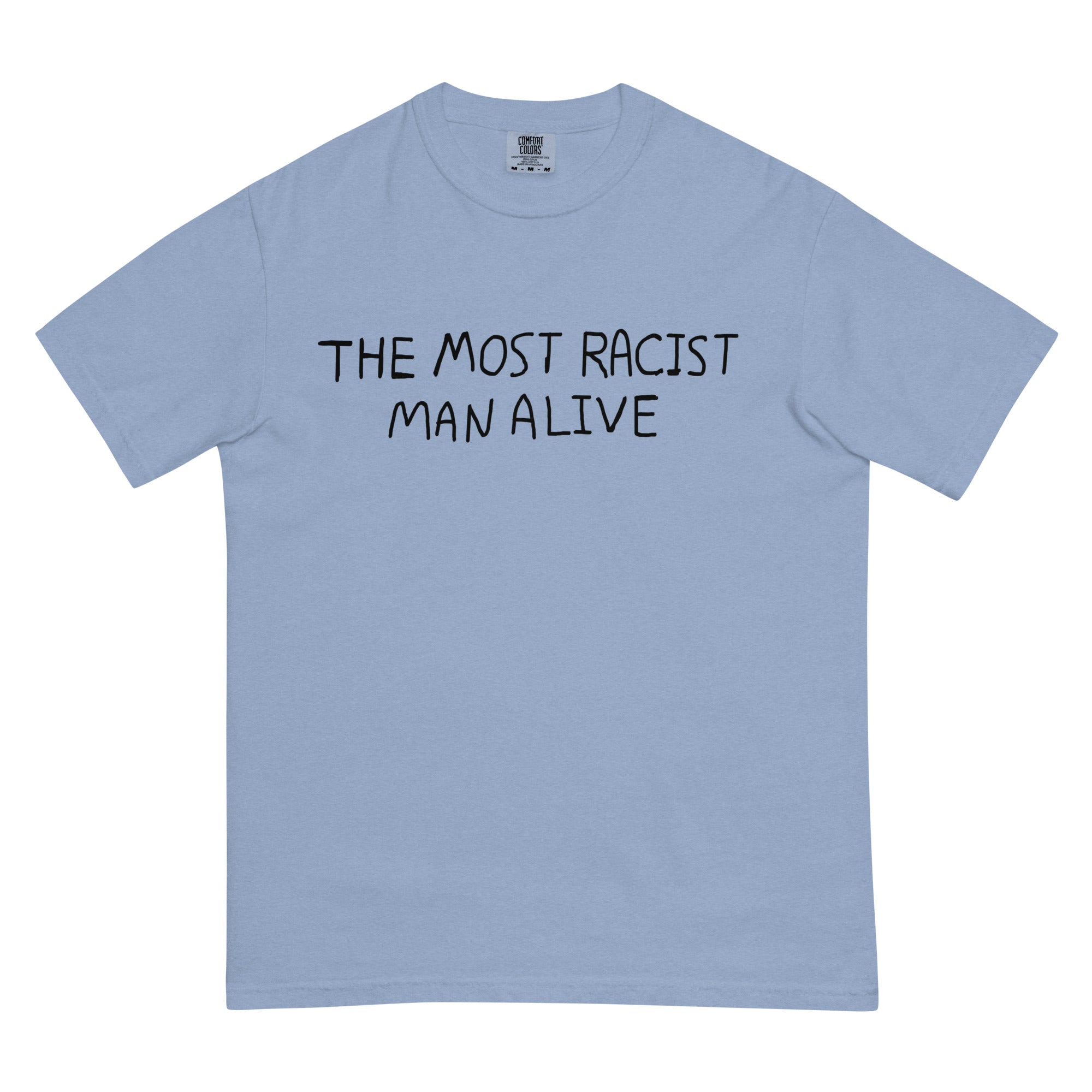 This references a comic that went viral on Twitter. The comic features a centrist couple (man and woman) with the man wearing a t-shirt with text saying "the most racist man alive".